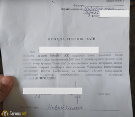 Qodirjon Normirzayevning so‘zlariga ko‘ra, ogohlantirish xatlari ma’muriyat tomonidan berilmagan.